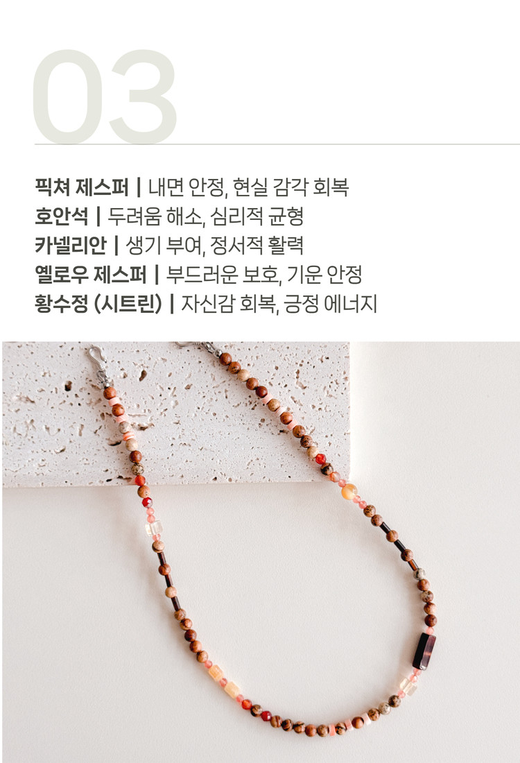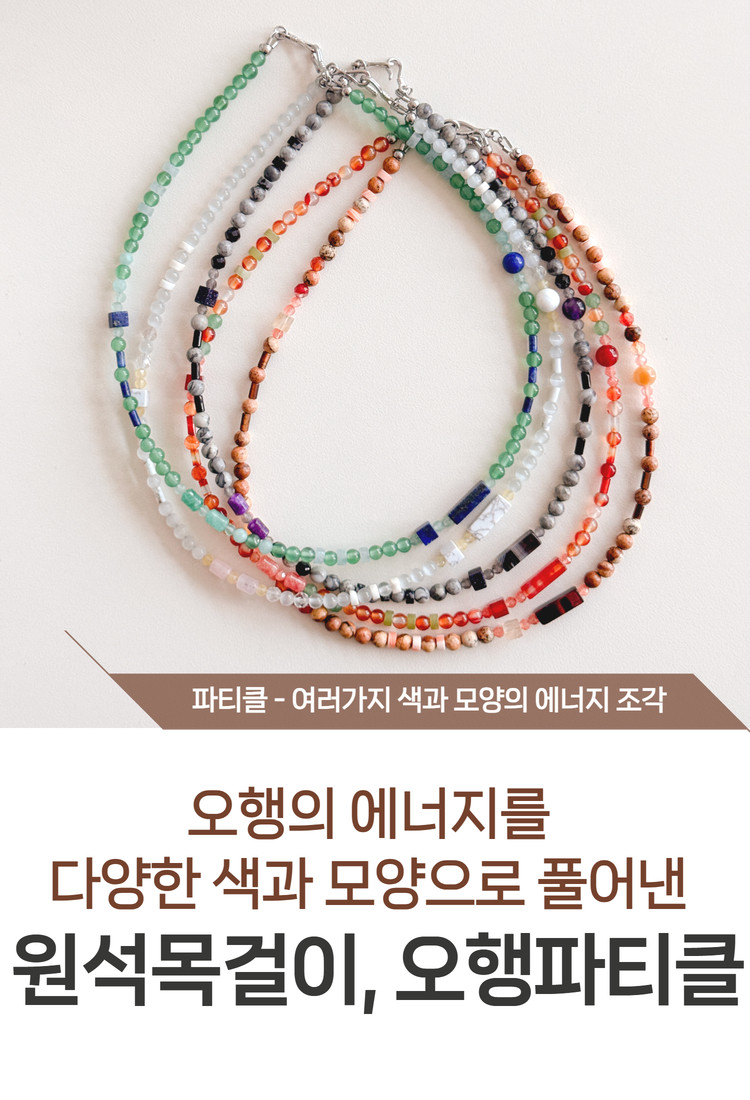 가볍지만 선은 또렷하게 흐트러진 마음을 고요히 다잡는 작고 단단한 에너지 원석목걸이, 오행파티클 스타일과 힐링을 동시에 오행파티클 원석목걸이 하나면 충분해 감정의 균형을 찾아주는 데일리 힐링 목걸이