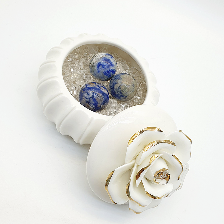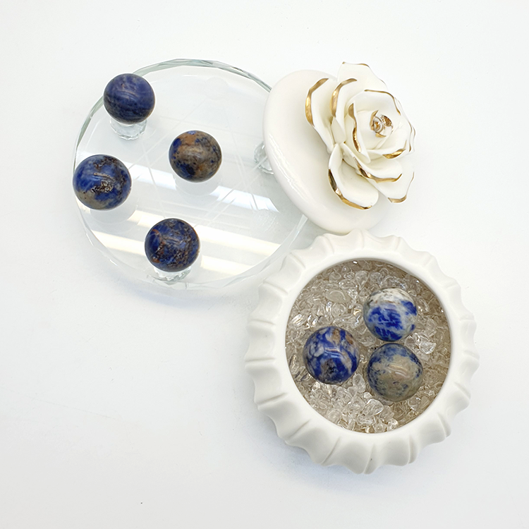 <플라워 원석보관함(소) + 소달라이트 블레싱볼 수정구>