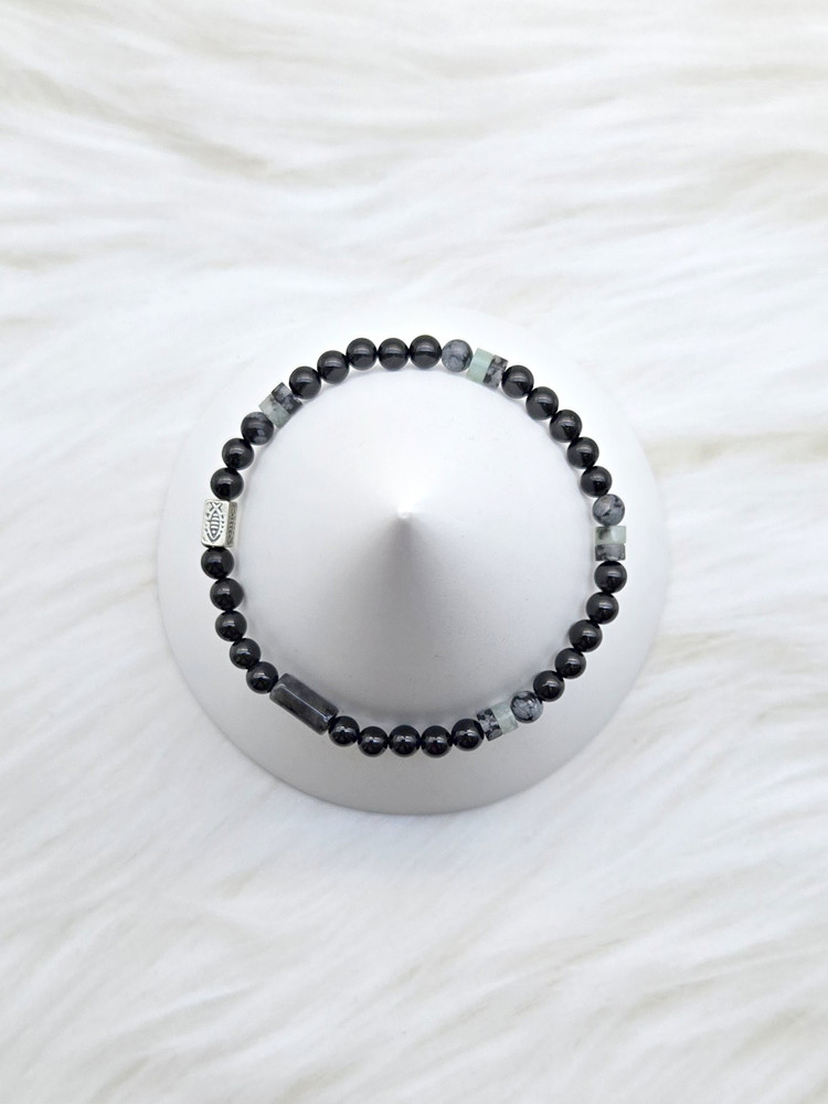 수(水) 용신팔찌 1. 실버 물고기 펜던트 2. 오닉스, 래브라도라이트, 제스퍼, 흑요석 4mm (개인에 따라 원석의 추가가 있을 수 있습니다)