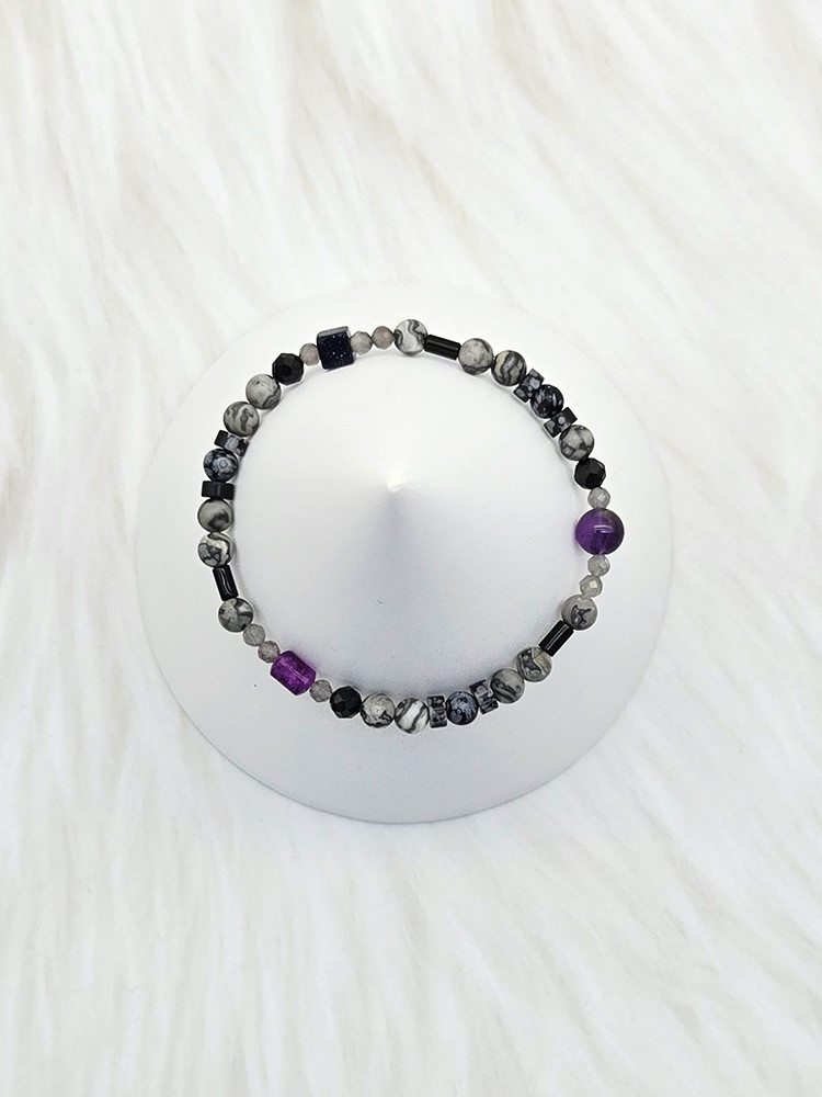 수(水) 용신팔찌 피카소제스퍼,자수정,오닉스,흑요석,블랙사금석 4mm/라운드,스퀘어,실린더,플랫 (개인에 따라 원석의 추가가 있을 수 있습니다)