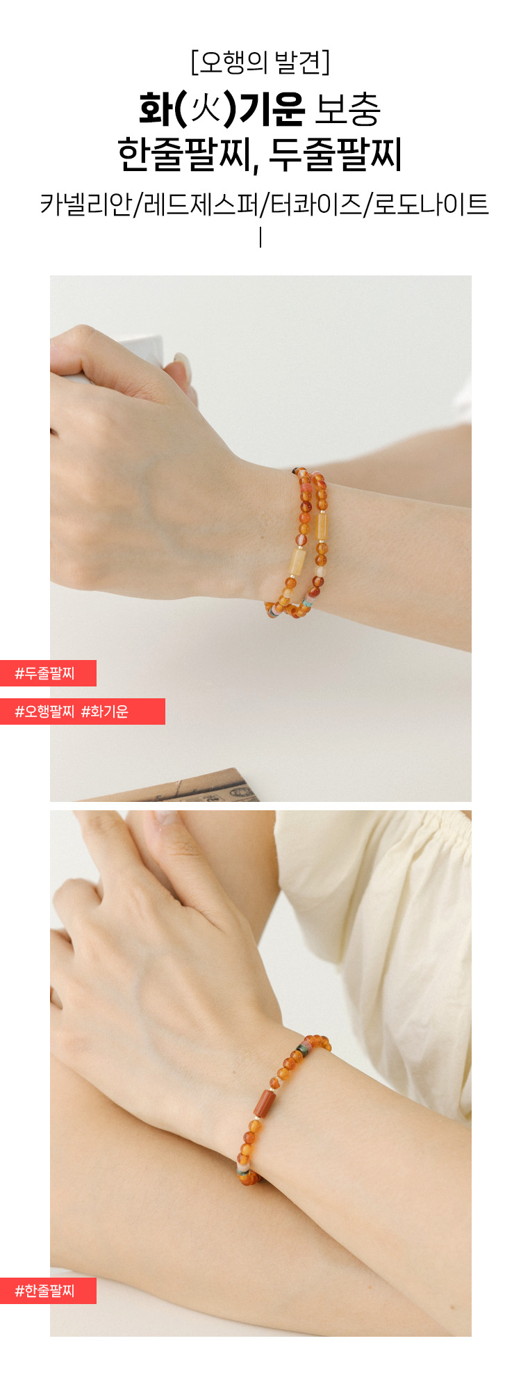 화기운 두줄팔찌 화기운 보충 + 재물운,연애운,대인관계,행운 마음의 평화와 안
