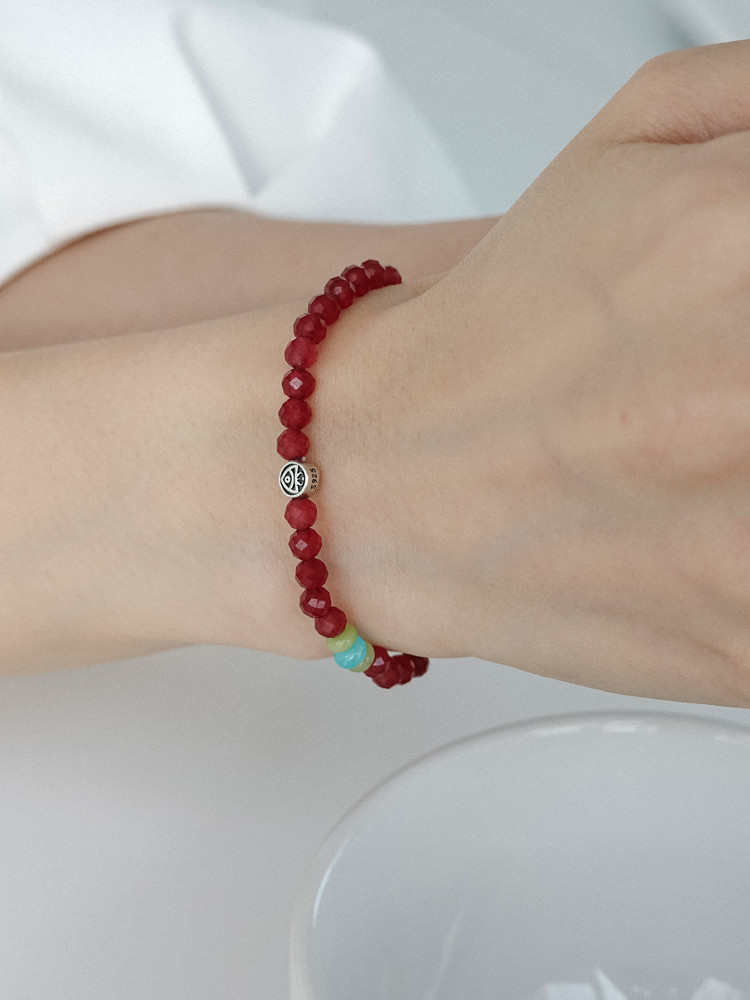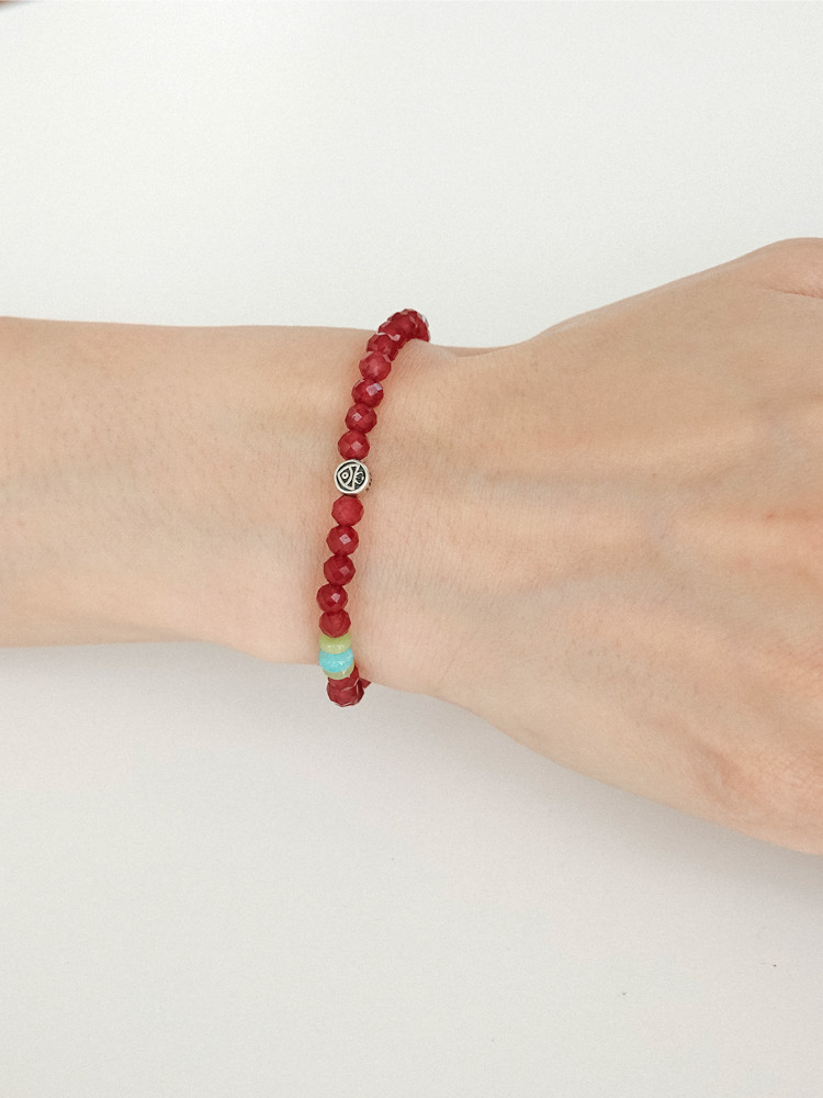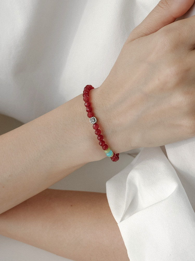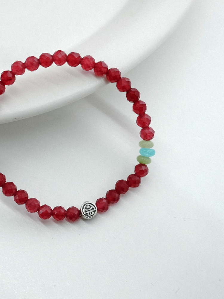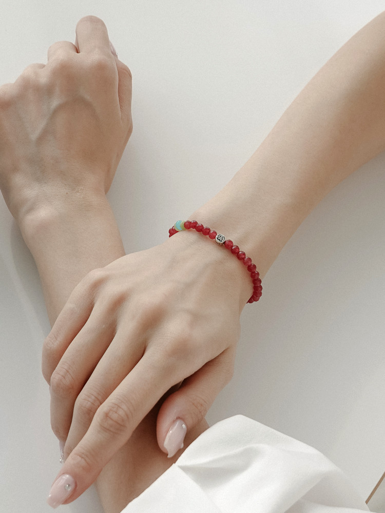 커팅 칼세도니(옥수) 4mm (레드, 그린, 블루) 실버 물고기 5mm 행운 아이템 포춘럭키 원석 팔찌