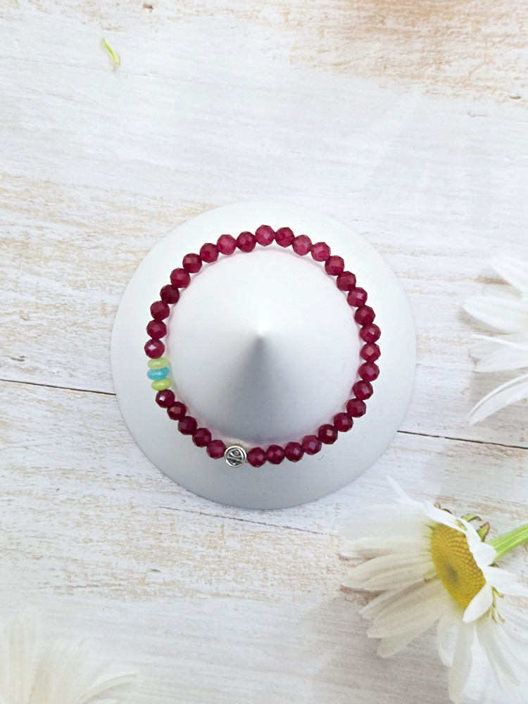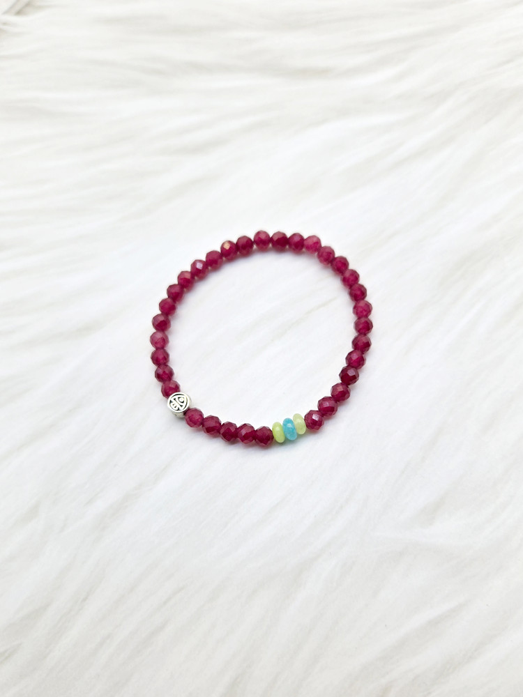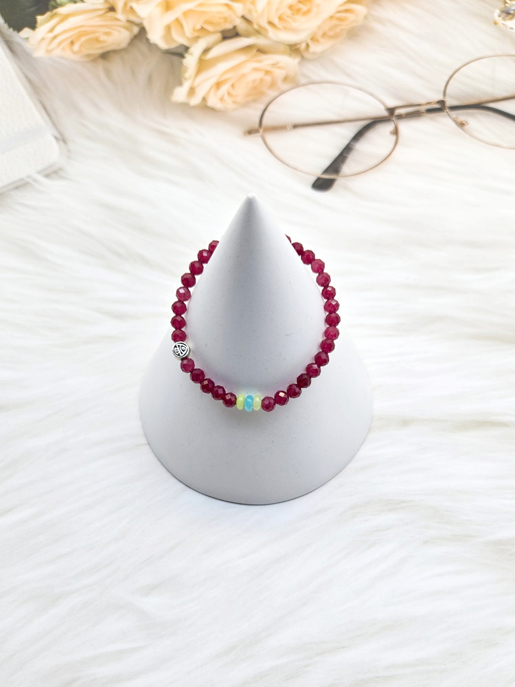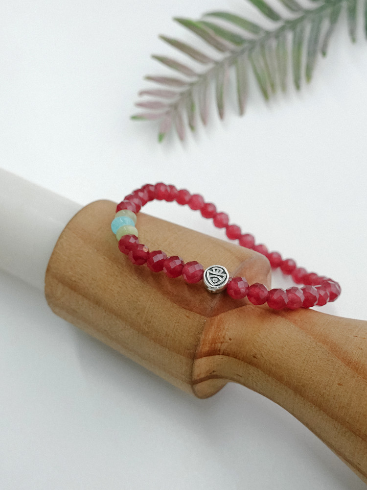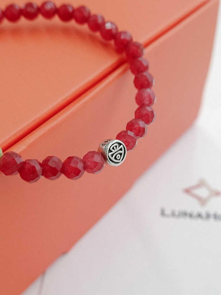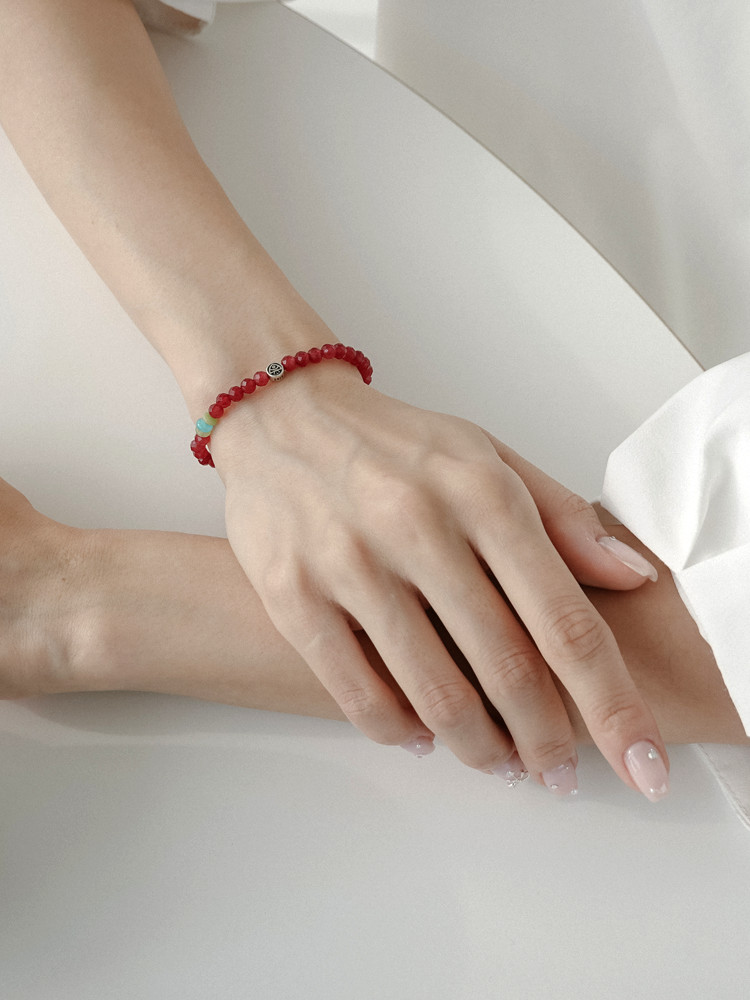 커팅 칼세도니(옥수) 4mm (레드, 그린, 블루) 실버 물고기 5mm 행운 아이템 포춘럭키 원석 팔찌
