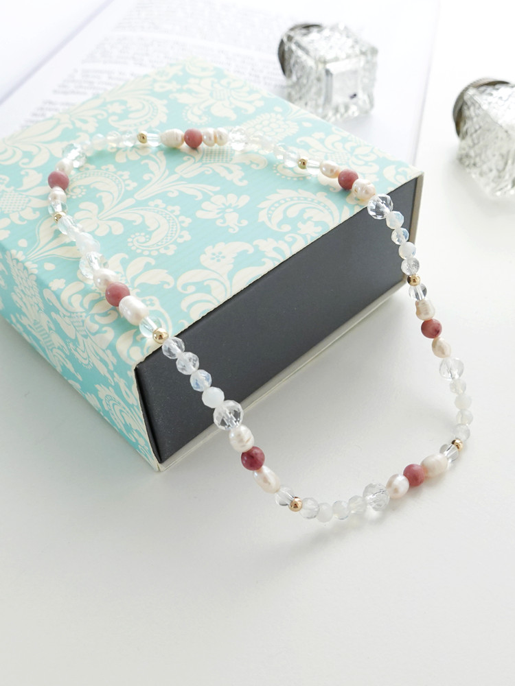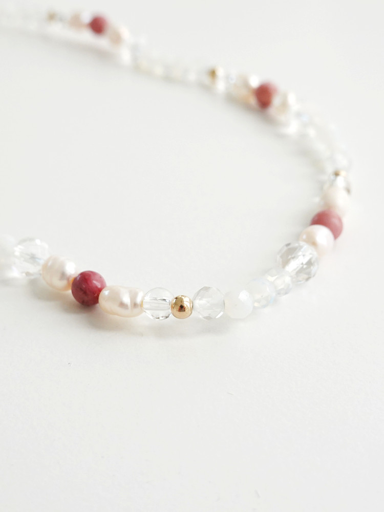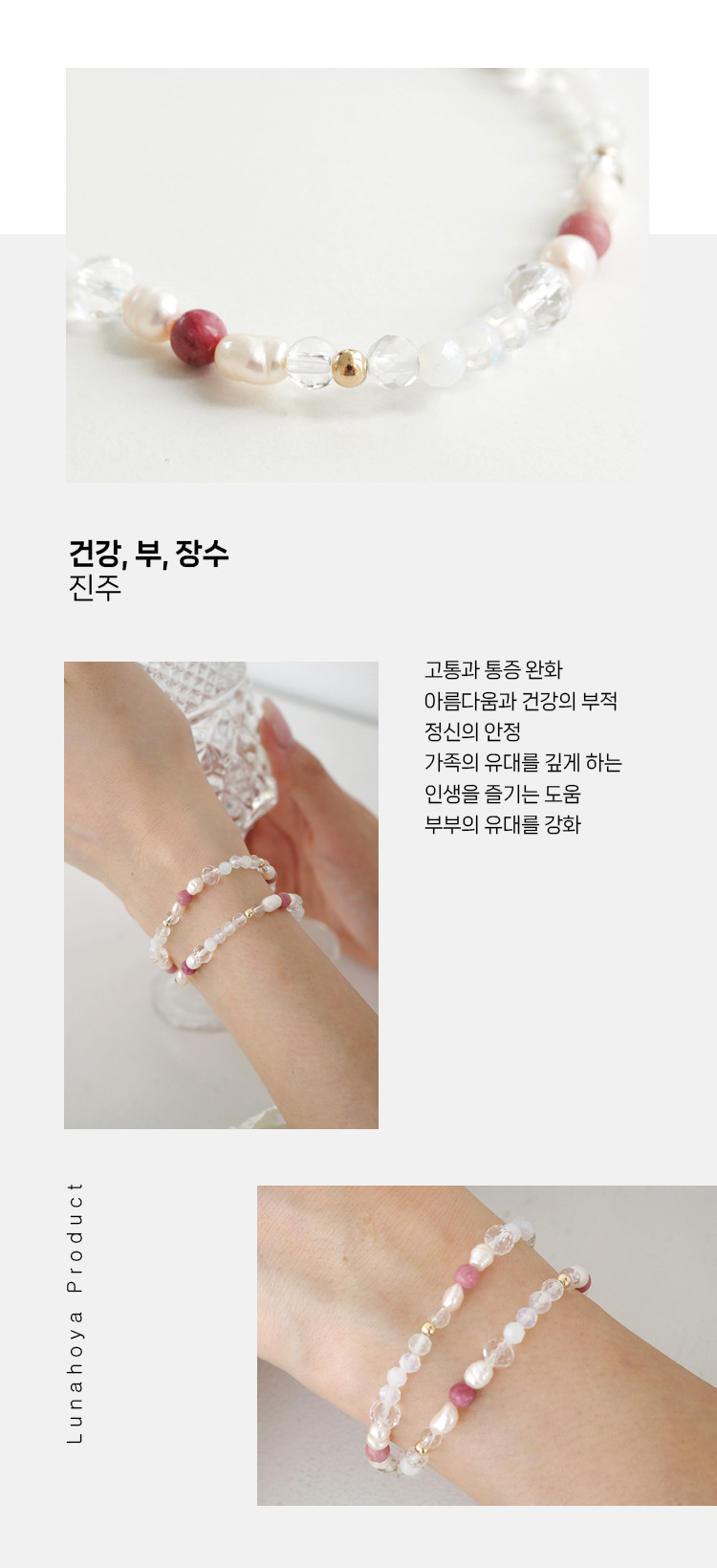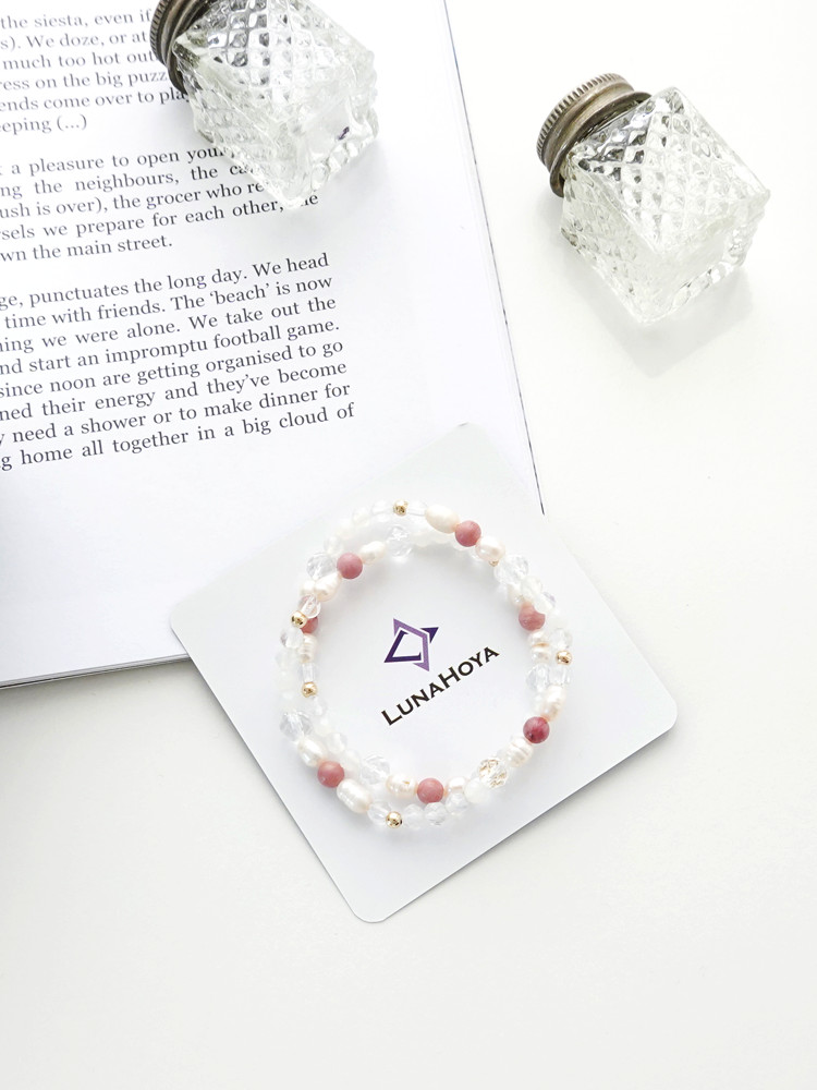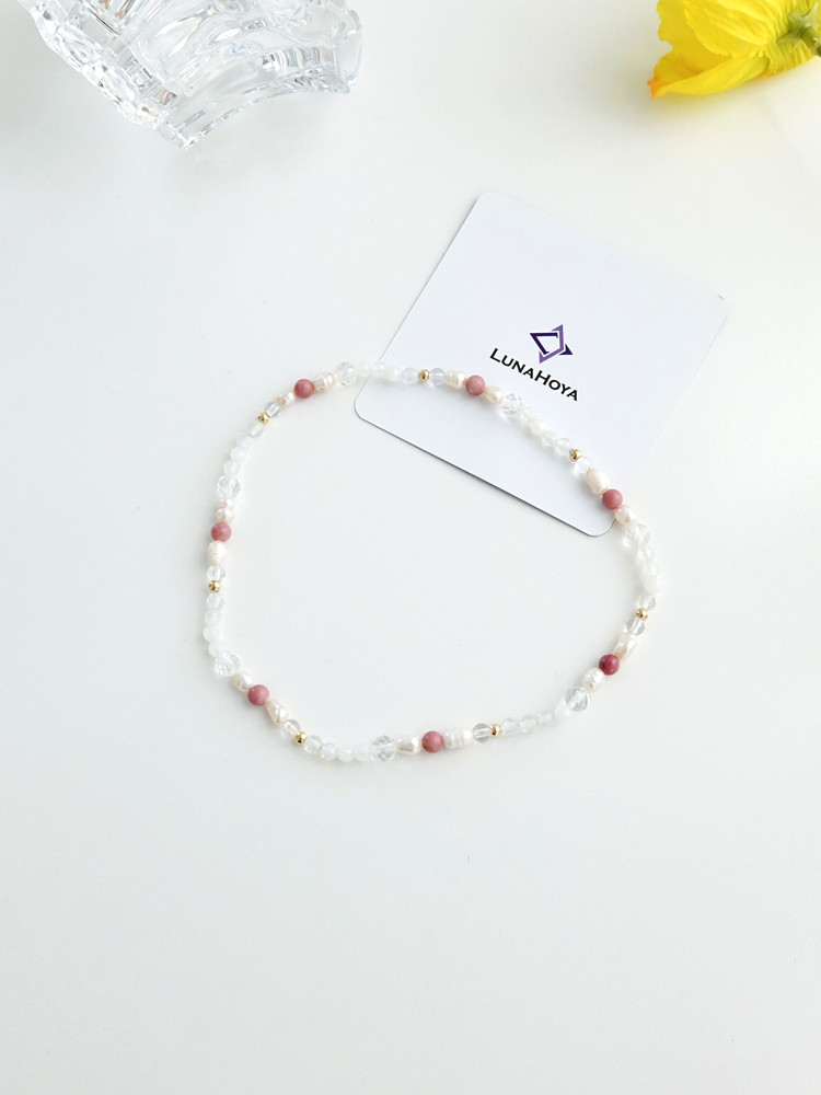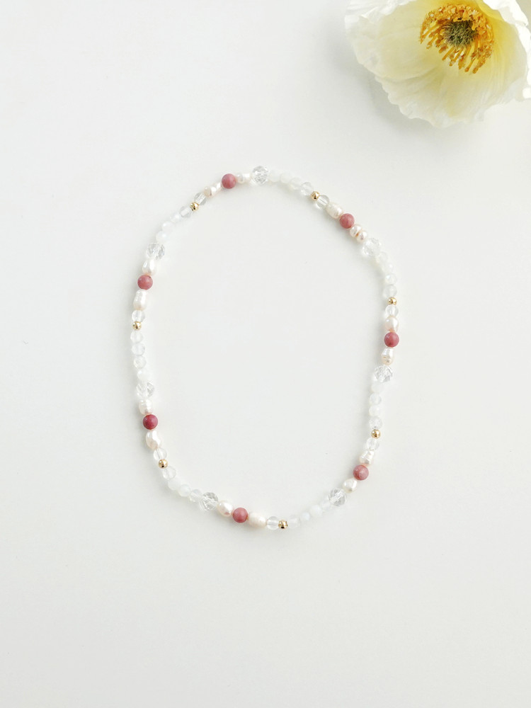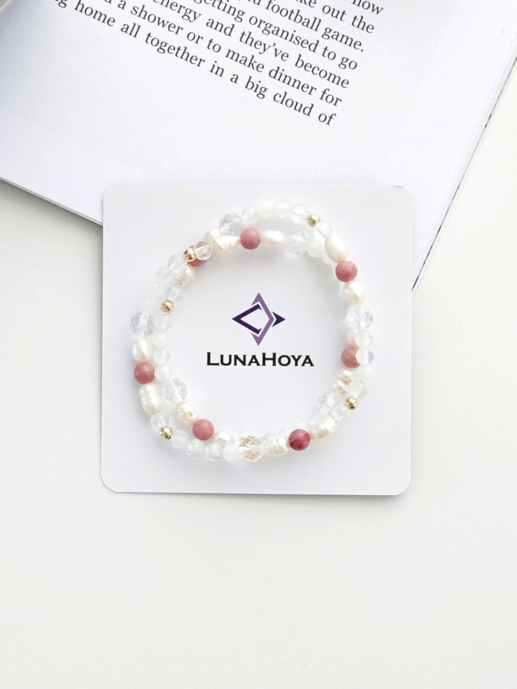 천연 담수 진주 4~5mm(3A) 커팅 문스톤 4mm 백수정 6mm,4mm 로도나이트 4mm 14k 골드필드 3mm [사랑과 풍요의 힘] 진주문 두줄 원석팔찌