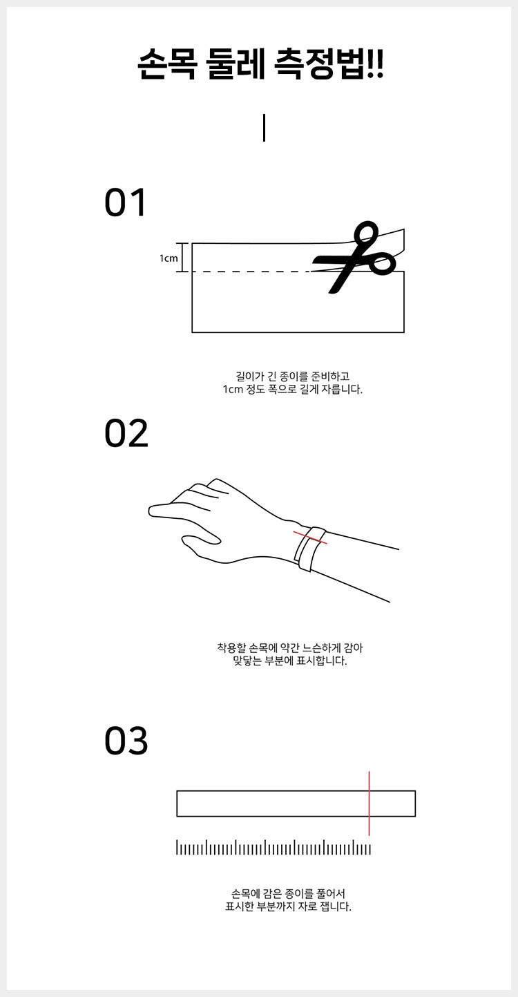 여유 없는 손목 사이즈를 알려주세요 ~!!