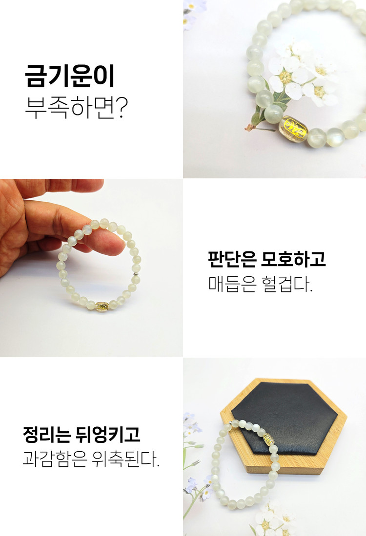 <옵션 4> 금기운 보충 ✔ 문스톤 6mm ✔ 백수정 옴자 6*10mm ✔써지컬스틸 론델